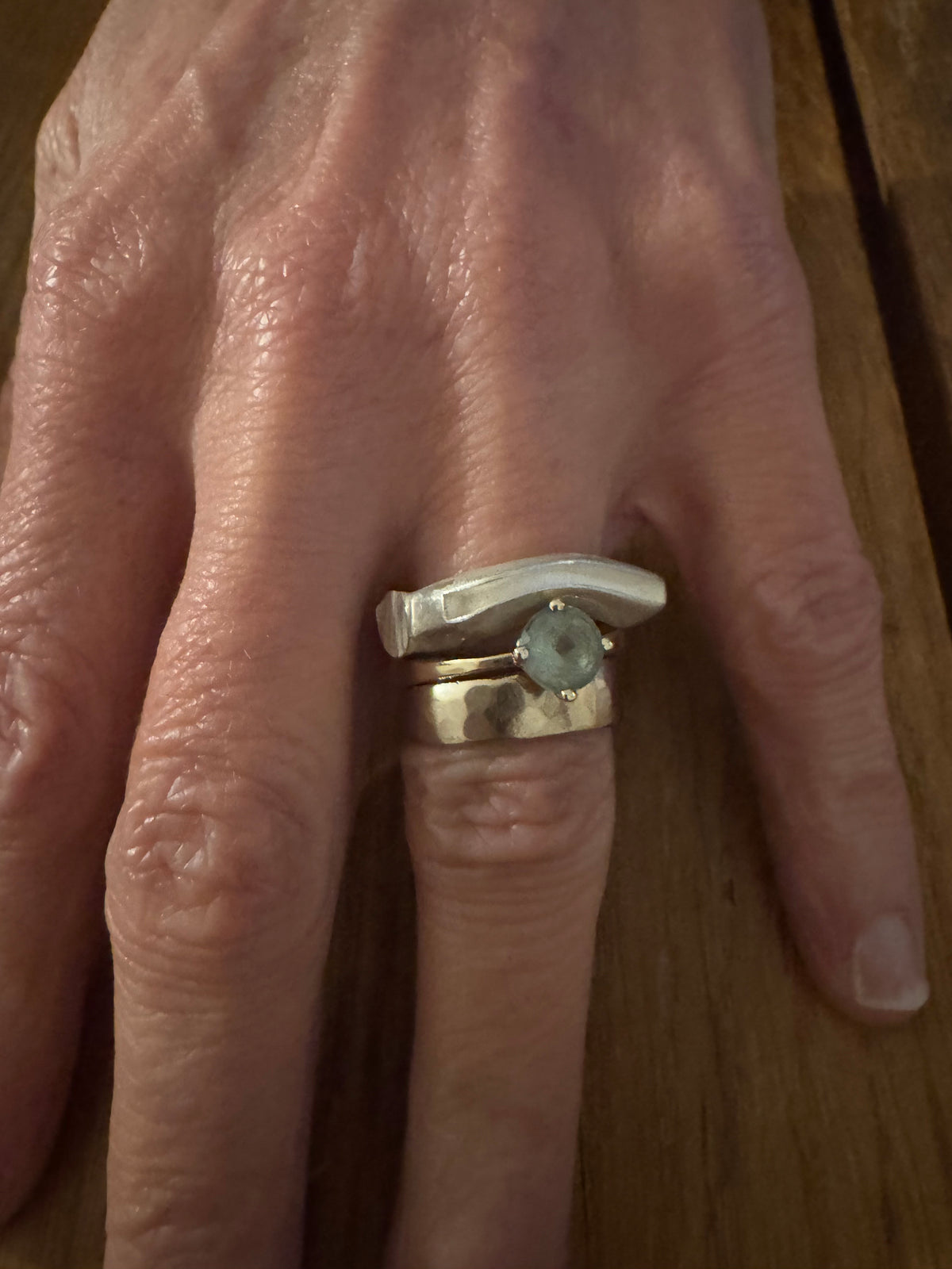 Silver Water Ring, Silver Birth with Dark Blue Sapphire & Union I in 9ct gold